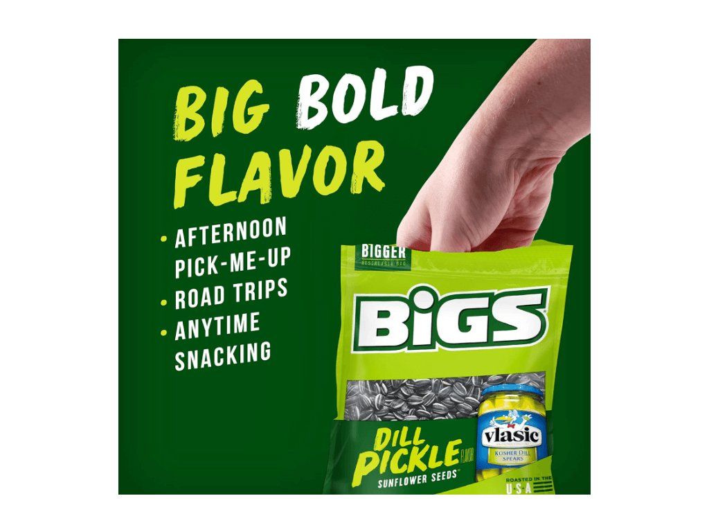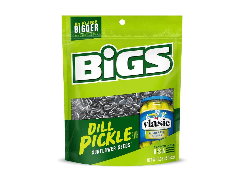 Překvap BIGS Sunflower Seeds Dill Pickle 152g – absolutně unikátní slunečnicová semínka s okurkovou kyselou chutí přímo z amerických snack barelů! 🥒✨